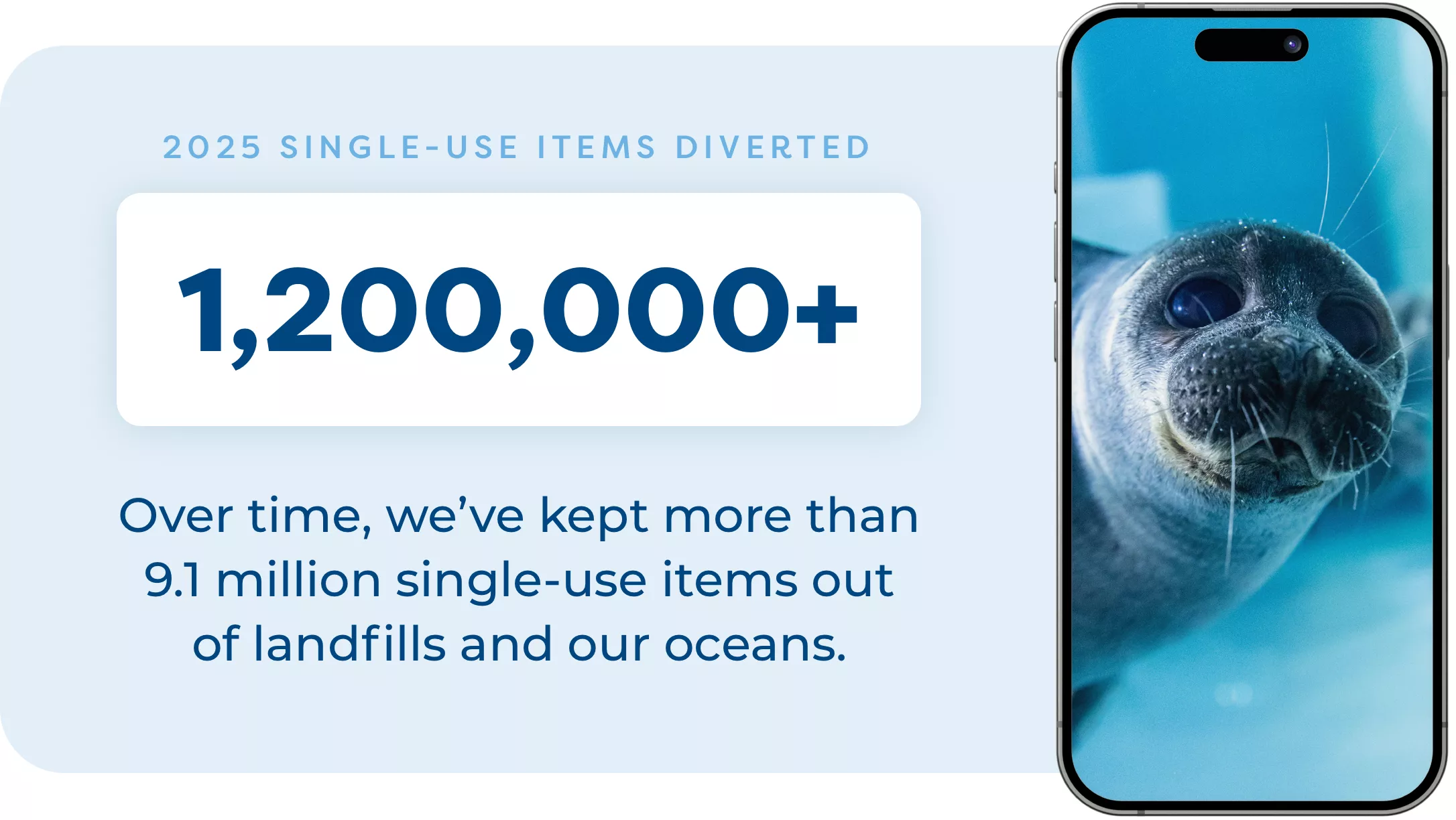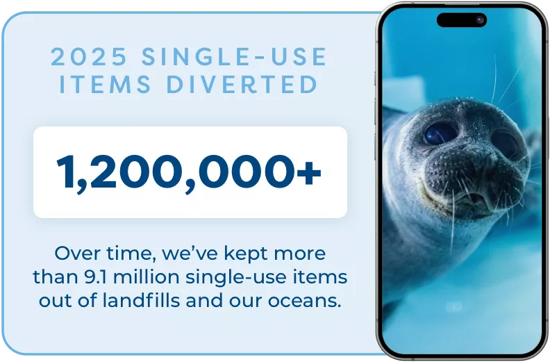 Our Top 100 App Users have eliminated over 500,000 single-use bottles, cups, and bags!