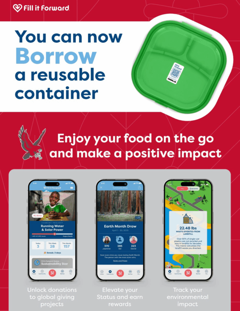 The program’s integration into dining transformed not only operations but also the student experience. Students now borrow, return, reuse, and track their impact on the same platform they were introduced to as first-year students, creating continuity and reinforcing reuse as a campus norm.