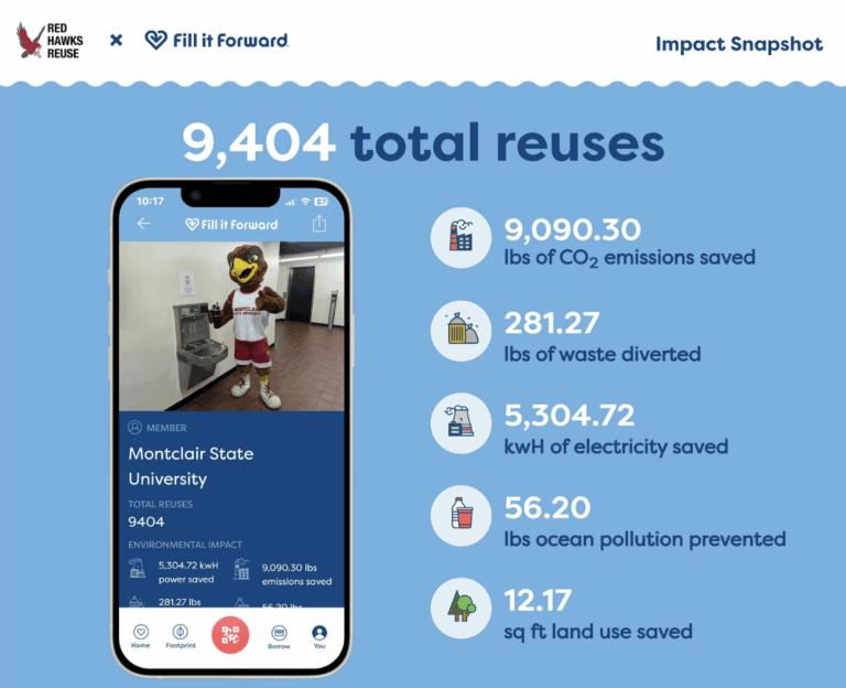 At Montclair State University, sustainability isn’t a standalone initiative—it’s part of the campus identity. From first-year orientations to bustling dining halls, reuse has become second nature for thousands of students, staff, and faculty. What began as a pilot with Fill it Forward in November 2023 has grown into a campus-wide movement built on engagement, education, and environmental leadership.