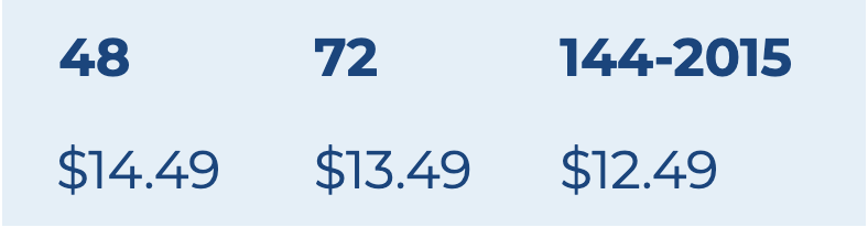 | $13.99 | $12.99 | $11.99 |